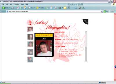 After developing Rebornalpha's website, I was approached by another band who liked the site. They asked me if I could do a similar one for them, so I did. Unfortuantly the site has been left unfinished as the band had been constantly changing and had yet to decide what they want on it. Since then they have now been focused on having a MySpace website. This site, like Rebornalpha's site, was developed using Flash.