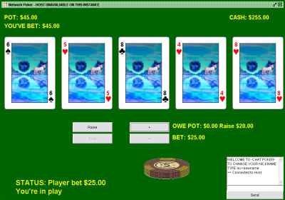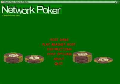 During my time at university I began to learn the programming language Java. In my current employment I also use this language. So I could learn Java in more depth, I decided to write a game using the language. I wrote a poker game that could be played over a network, whether it was a private network or the Internet. The game is only two player but does work.