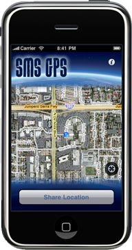 With the release of version 1.2.0 for iOS 4.0, you will be able to send SMS messages with your location from within the app. The receiver of the SMS message will be able to select your location and on compatible devices it will load the Google Maps application displaying your location.